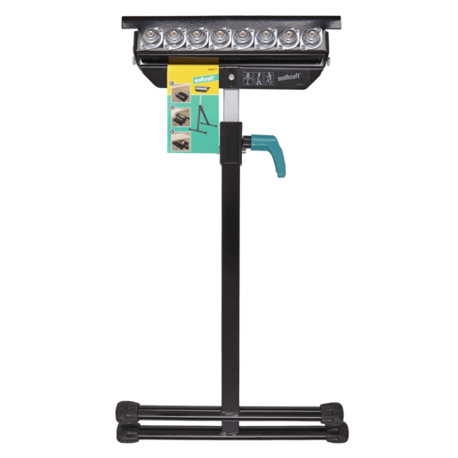 Estable y plegable con capacidad de carga de 125 kg. Incluye tablero giratorio de ajuste rápido para sierra ingletadora y soporte de taladro de wolfcraft.