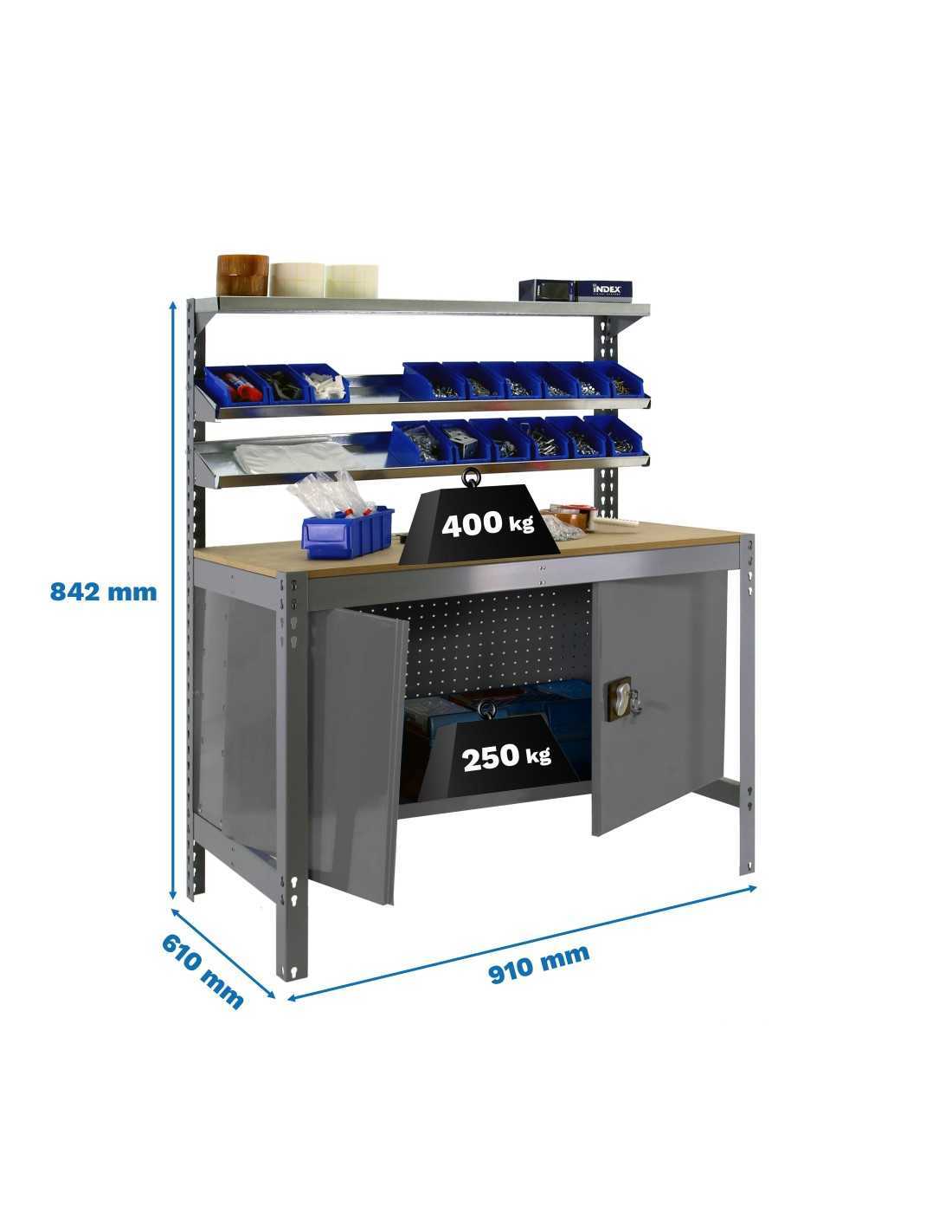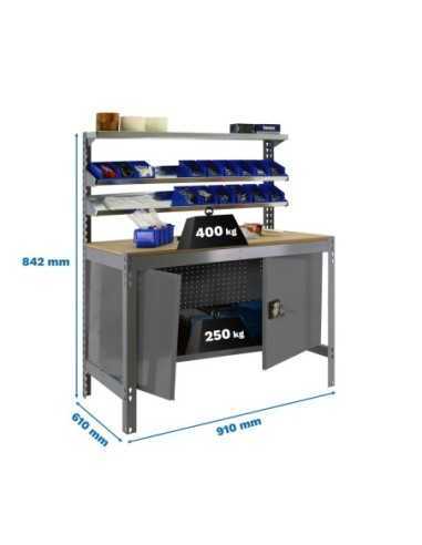 Con estructura metálica de alta resistencia y superficies amplias, esta mesa permite trabajar con total estabilidad, incluso con maquinaria, herramientas o componentes de peso. Ideal para talleres, garajes, almacenes o espacios técnicos.
