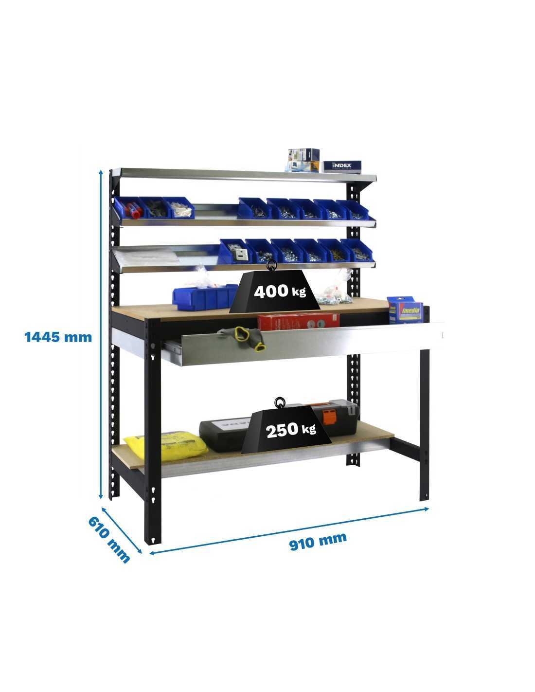 Con estructura metálica de alta resistencia y superficies amplias, esta mesa permite trabajar con total estabilidad, incluso con maquinaria, herramientas o componentes de peso. Ideal para talleres, garajes, almacenes o espacios técnicos.
