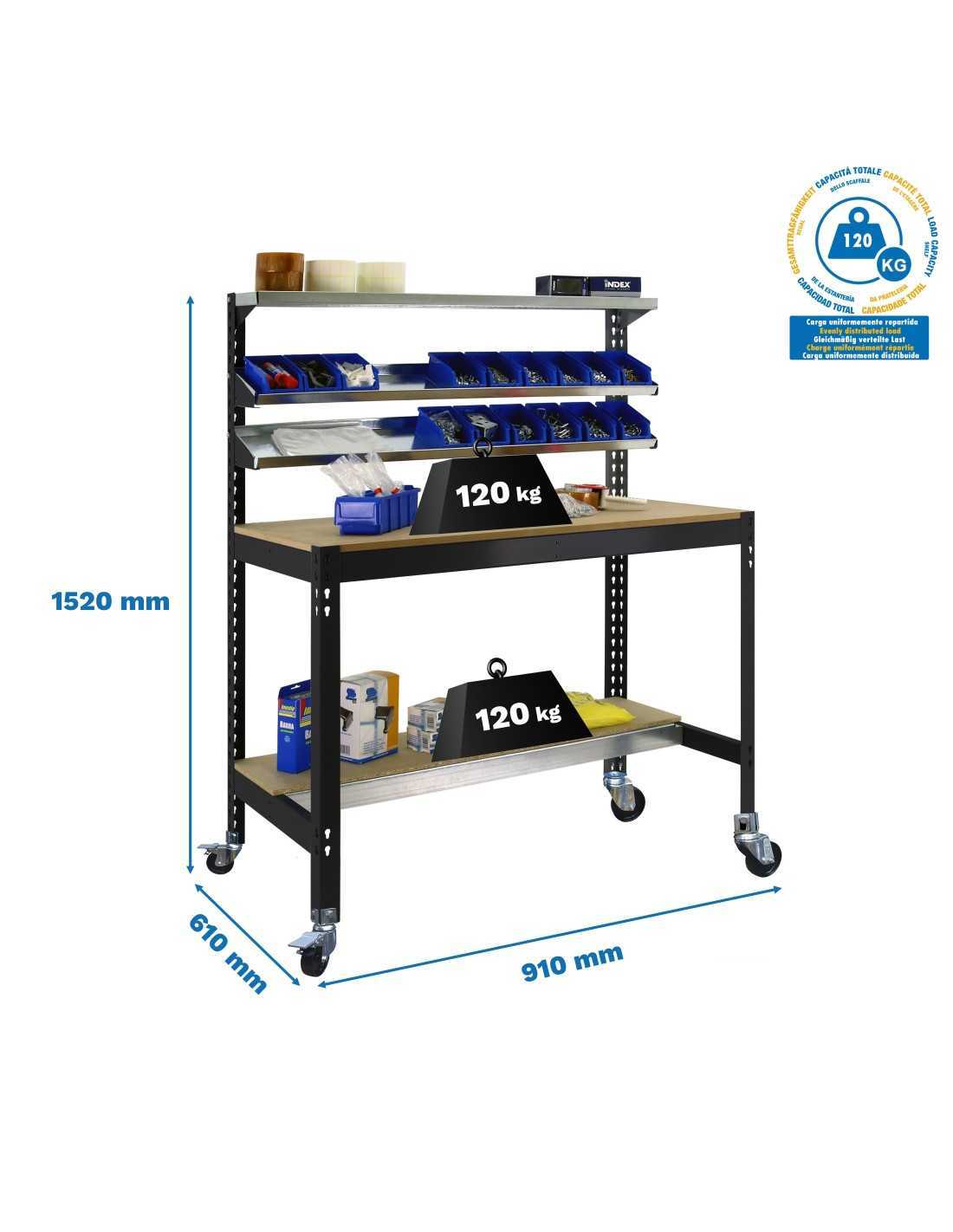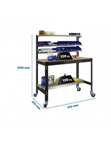 Con estructura metálica de alta resistencia y superficies amplias, esta mesa permite trabajar con total estabilidad, incluso con maquinaria, herramientas o componentes de peso. Ideal para talleres, garajes, almacenes o espacios técnicos.