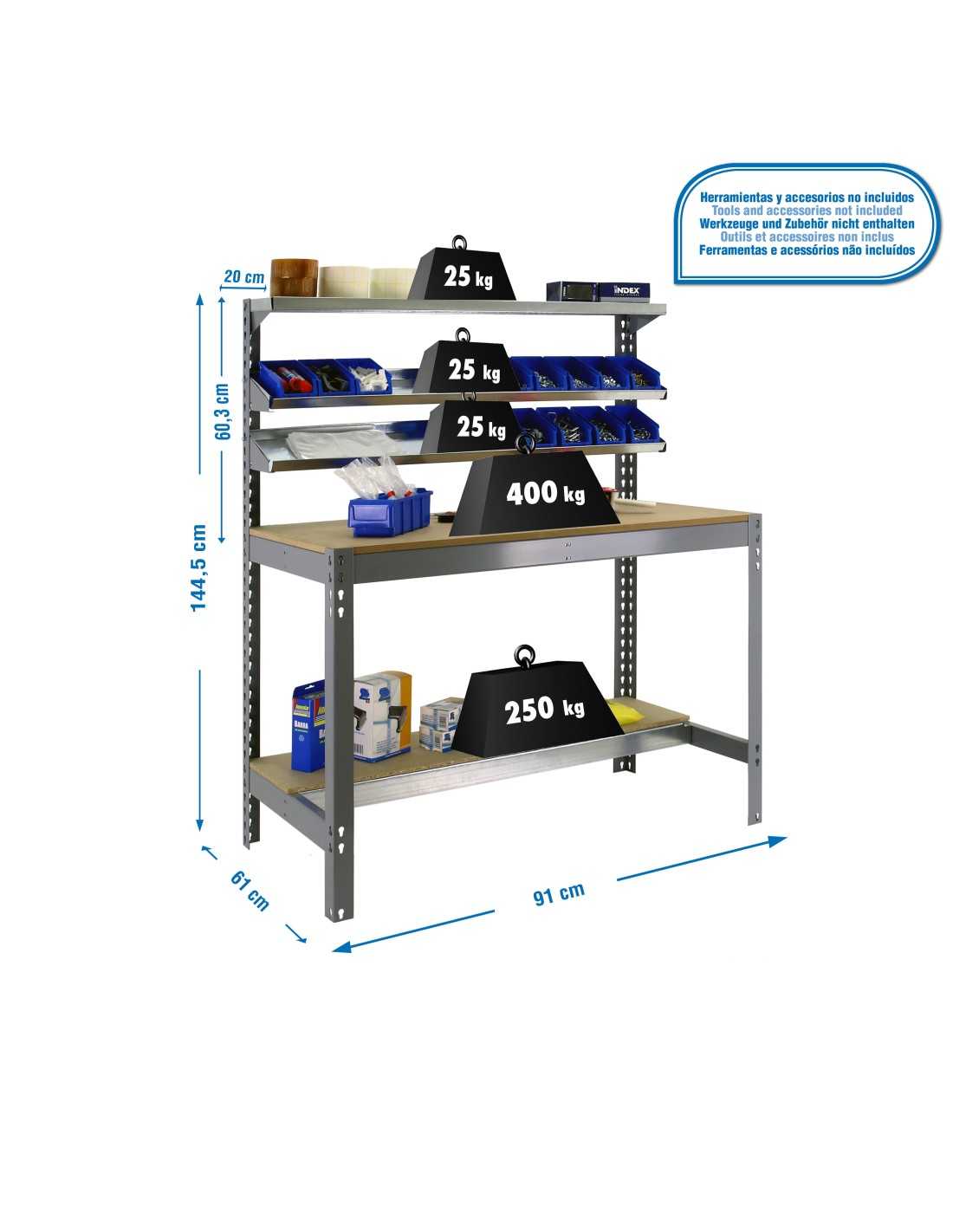 Con estructura metálica de alta resistencia y superficies amplias, esta mesa permite trabajar con total estabilidad, incluso con maquinaria, herramientas o componentes de peso. Ideal para talleres, garajes, almacenes o espacios técnicos.