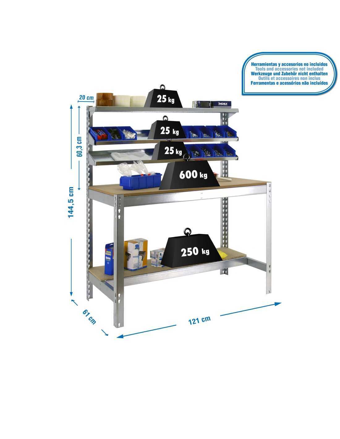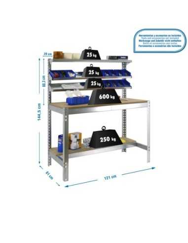 Especificaciones técnicas de la Mesa de Trabajo SIMONWORK BT 1 1200 galva/madera