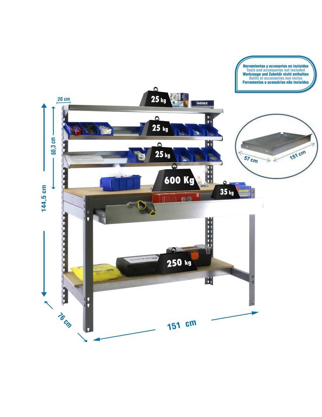 Con estructura metálica de alta resistencia y superficies amplias, esta mesa permite trabajar con total estabilidad, incluso con maquinaria, herramientas o componentes de peso. Ideal para talleres, garajes, almacenes o espacios técnicos.