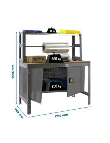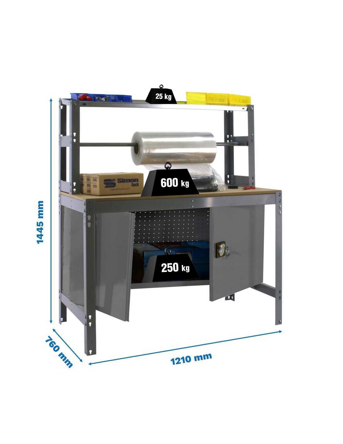 La Mesa de Trabajo SIMONWORK BT 4 cabinet 1200 gris/madera forma parte de la línea profesional SIMONWORK de SimonRack. Diseñada para entornos donde la robustez y la funcionalidad son clave, esta mesa o banco de trabajo ofrece una solución duradera, resistente y práctica para zonas de montaje, mantenimiento, bricolaje o uso industrial.