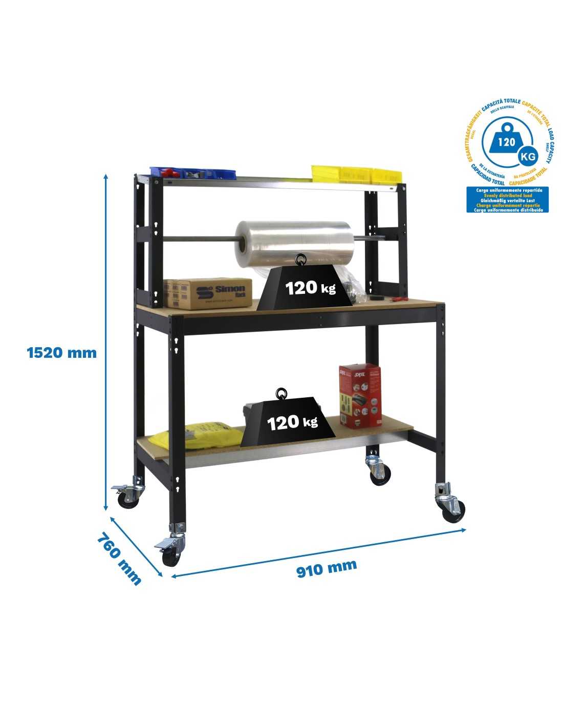 Con estructura metálica de alta resistencia y superficies amplias, esta mesa permite trabajar con total estabilidad, incluso con maquinaria, herramientas o componentes de peso. Ideal para talleres, garajes, almacenes o espacios técnicos.