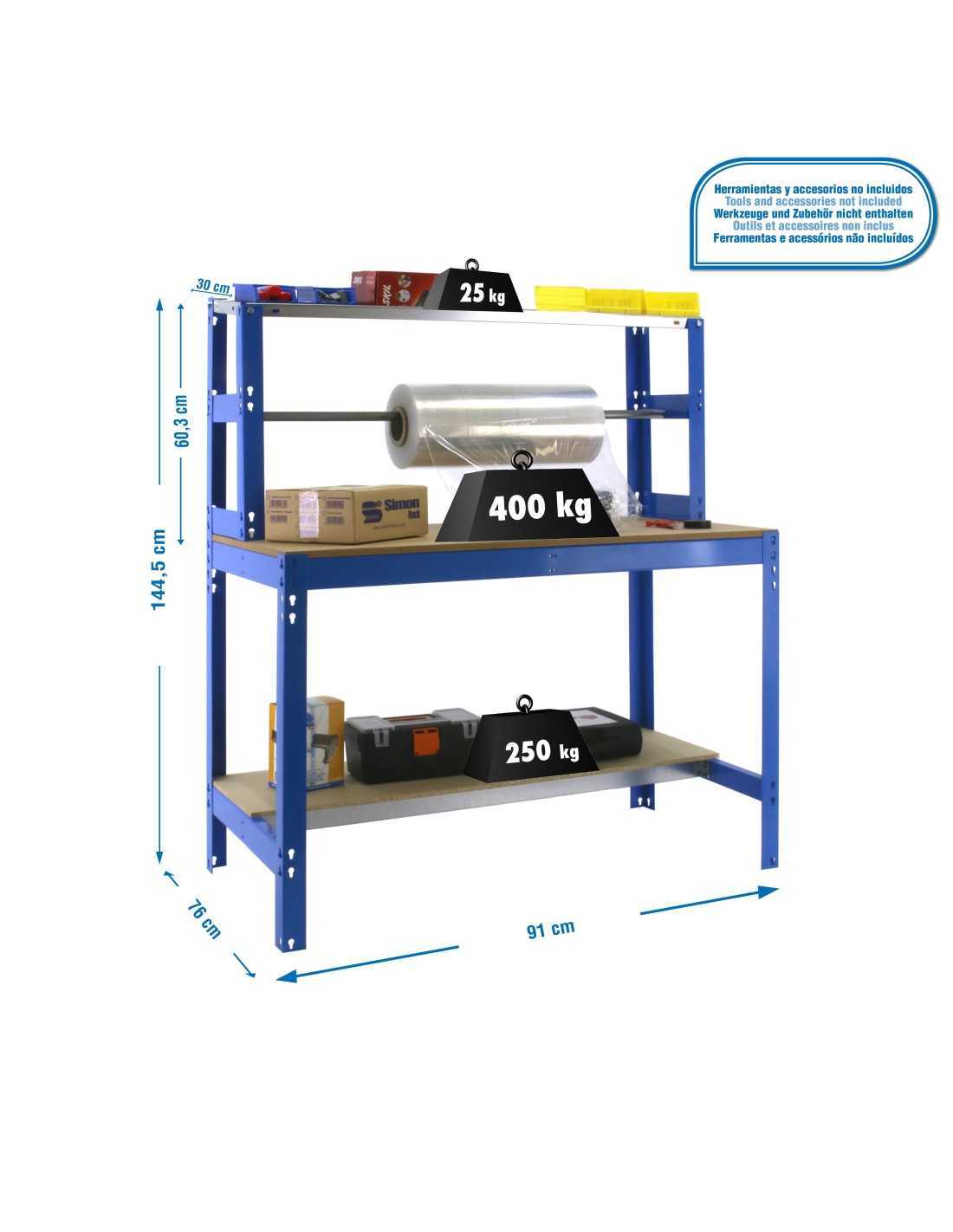 La Mesa de Trabajo SIMONWORK BT 4 900 azul/madera de SimonRack ha sido desarrollada para profesionales que buscan una mesa o banco de trabajo sólido, seguro y adaptado a entornos de alto rendimiento. Su estructura metálica aporta estabilidad y resistencia para soportar cargas elevadas de forma continua.