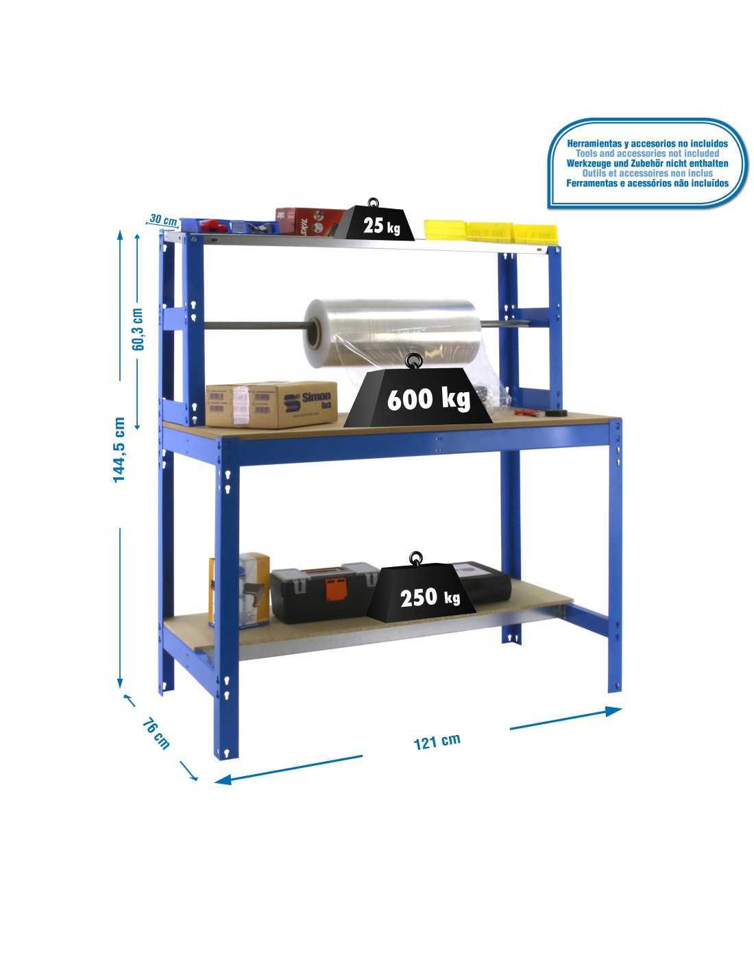 La Mesa de Trabajo SIMONWORK BT 4 1200 azul/madera forma parte de la línea profesional SIMONWORK de SimonRack. Diseñada para entornos donde la robustez y la funcionalidad son clave, esta mesa o banco de trabajo ofrece una solución duradera, resistente y práctica para zonas de montaje, mantenimiento, bricolaje o uso industrial.