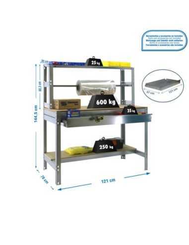 Con estructura metálica de alta resistencia y superficies amplias, esta mesa permite trabajar con total estabilidad, incluso con maquinaria, herramientas o componentes de peso. Ideal para talleres, garajes, almacenes o espacios técnicos.