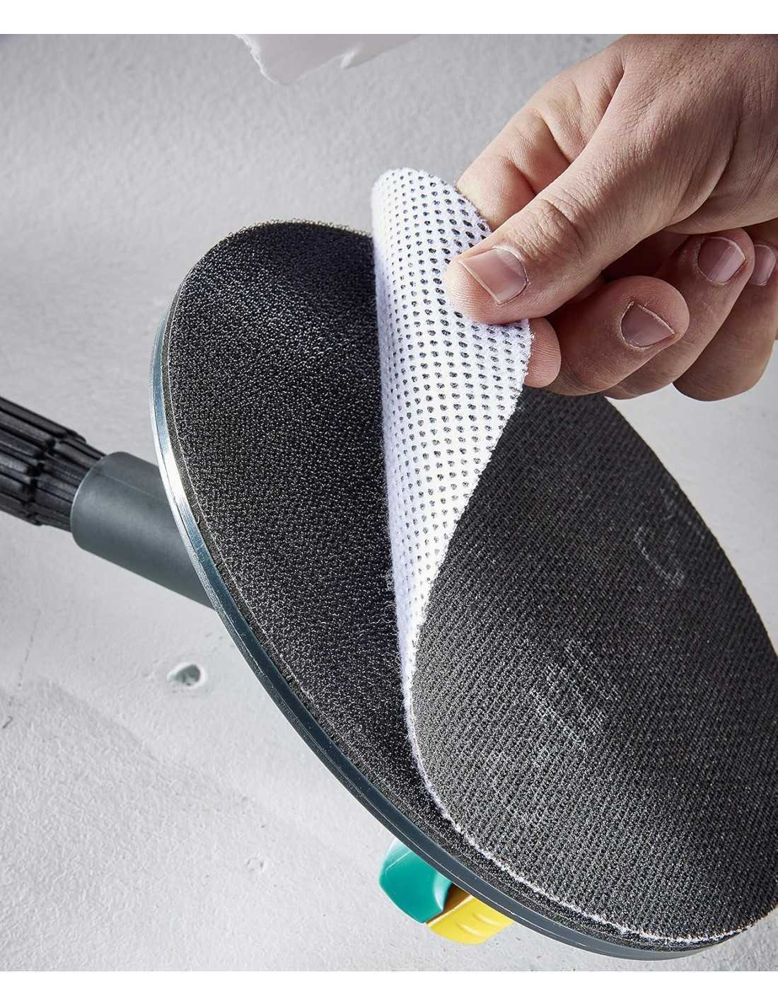 - Incluye: 1 disco de lijado circular, 1 tejido de rejilla adherente, 1 soporte de techo para mango telescópico