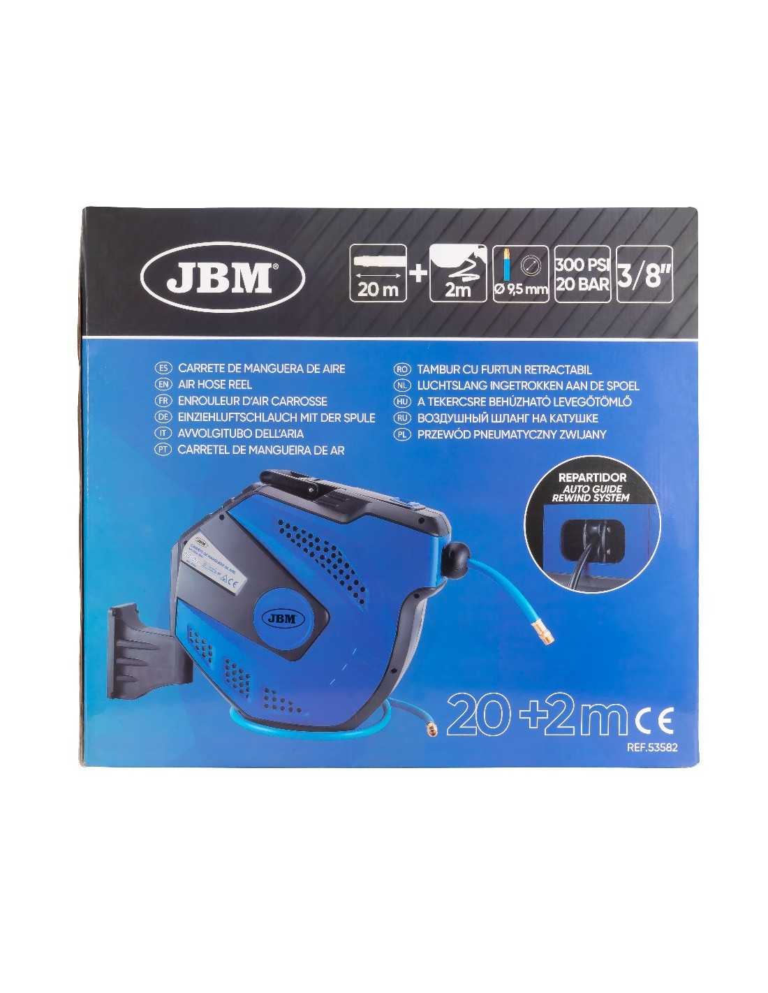Manguera Aire Comprimido JBM Carrete 22 Mt Azul Autoenrrollable