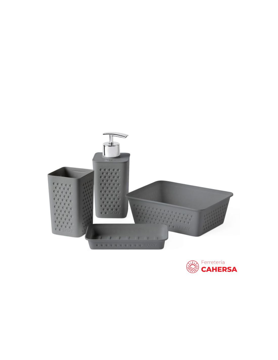 Colección TATAY portacepillo dosificador jabonera organizador Bohol gris: características y ventajas
