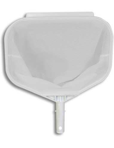- Soporte en Polipropileno Blanco: El cuerpo del recogehojas está fabricado en polipropileno de alta resistencia química y mecánica, lo que garantiza que la estructura no se deforme ni se decolore con la exposición prolongada al sol y al cloro.