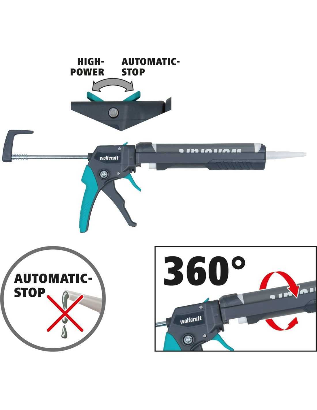 La pistola de cartuchos MG 550 de Wolfcraft es una herramienta potente y versátil diseñada para satisfacer las necesidades de los profesionales y aficionados al bricolaje que trabajan con selladores, mortero para juntas, adhesivos, silicona y acrílicos. Su principal ventaja reside en su capacidad de amplificar la fuerza de descarga hasta 220 kg, lo que la convierte en una herramienta todoterreno capaz de manejar una amplia variedad de materiales, desde sellantes especiales hasta adhesivos de alta viscosidad.