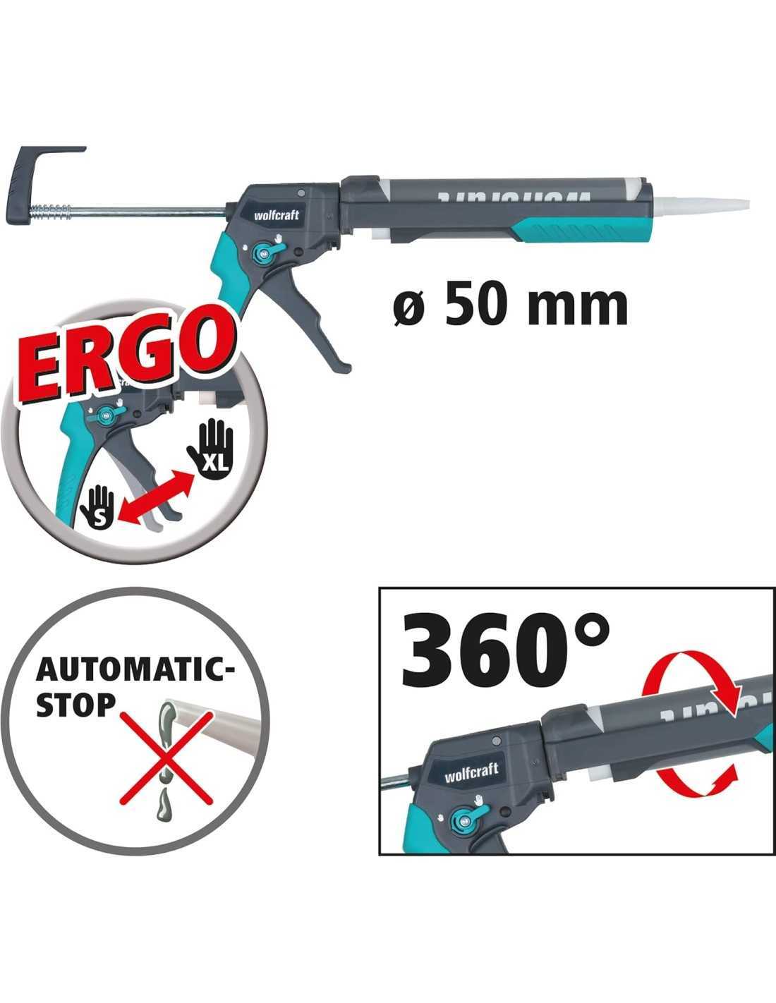 - Compatibilidad: Cartuchos de 310 ml (Ø 50 x 225 mm)