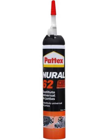 PATTEX Nural 62 es un sustituto universal de juntas especialmente formulado para automocio?n e industria. Tambie?n es apto como complemento de juntas para mejorar la hermeticidad. Su fo?rmula a base silicona ha sido desarrol- lada para lograr una excepcional resistencia al aceite y una adecuada elasticidad. Formato disen?ado para lograr una ma?xima precisio?n.