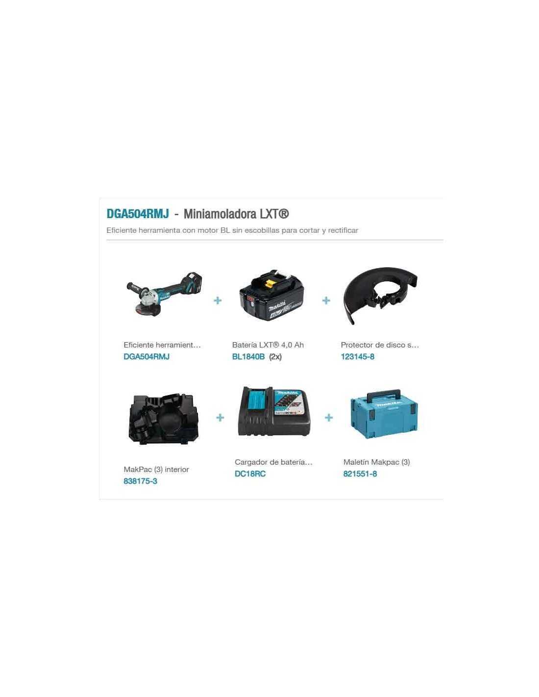 Mini Amoladora MAKITA DGA504 RMJ 125mm 18V: kit completo con batería y cargador