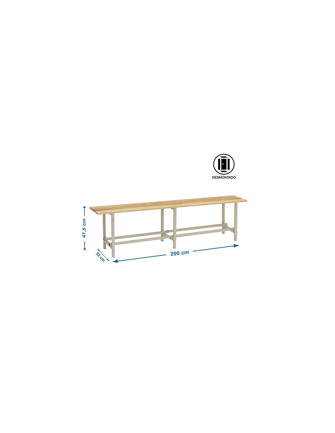 Banco de Vestuario Desmontable Madera 2000 mm