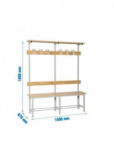 Banco de Vestuario Desmontable Doble con Repisa 12/1500