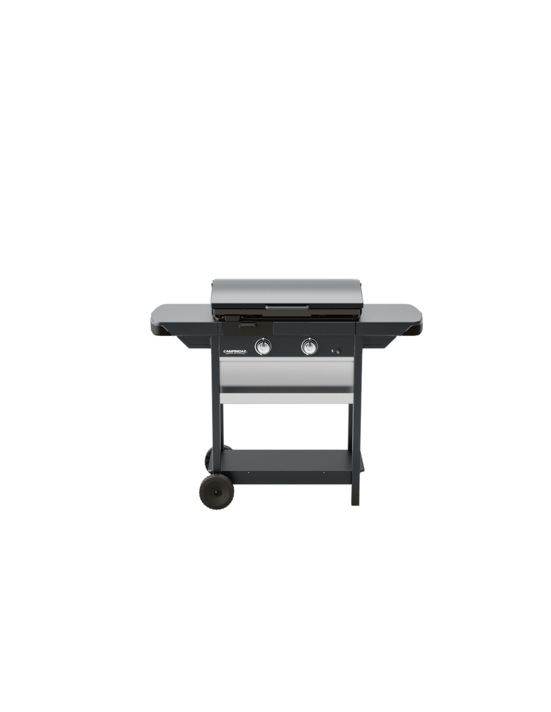 La Plancha EX Plus redefine la experiencia de cocinar al aire libre, ofreciendo una versatilidad increíble para aquellos que buscan resultados profesionales en un formato doméstico. Este equipo combina la potencia de sus quemadores de acero de alto rendimiento con una robusta superficie de cocción de hierro fundido recubierta de esmalte, lo que garantiza un calor fuerte, constante y perfectamente distribuido. Desde delicados mariscos hasta complejos salteados, pasando por carnes a la parrilla y huevos fritos, su generosa área de cocción con propiedades antiadherentes facilita la preparación de una amplia variedad de platos. Al ser una unidad independiente que incorpora su propio carrito con ruedas, es la opción perfecta para anfitriones que suelen recibir a grupos grandes. Las mesas laterales plegables y los estantes integrados ofrecen un espacio funcional para organizar utensilios y condimentos, mientras que su diseño permite que toda la superficie sea extraíble, asegurando una limpieza rápida y sin esfuerzo después de cada festín familiar.