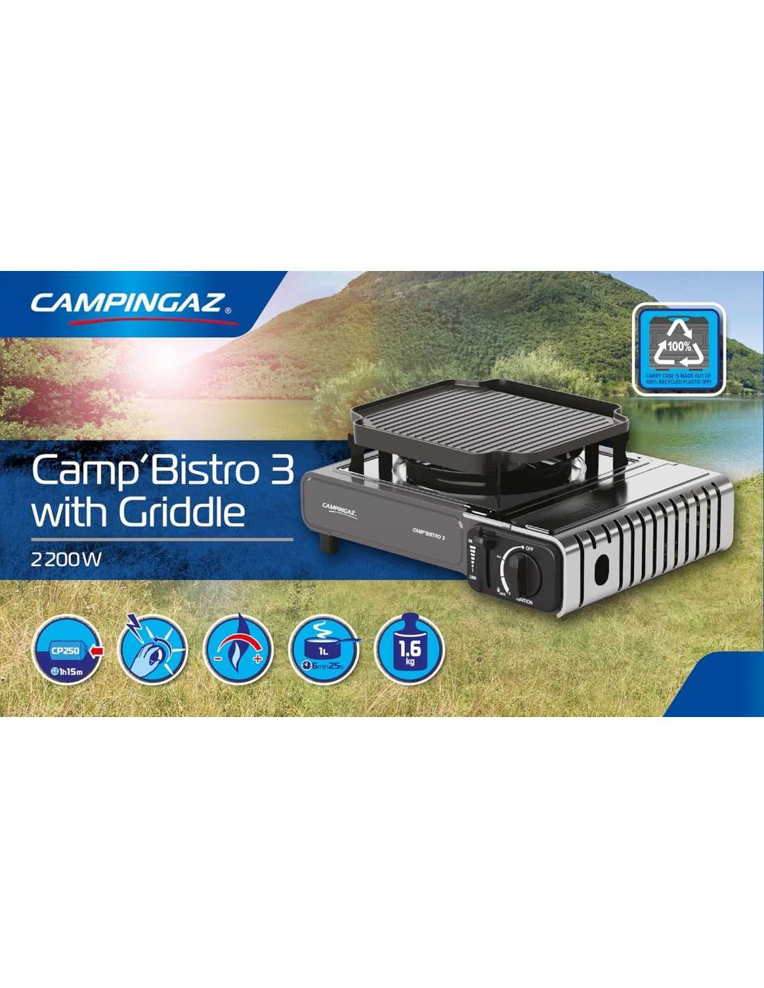 A continuación, se detallan las especificaciones técnicas del hornillo Campingaz Camp Bistro 3 Combo: