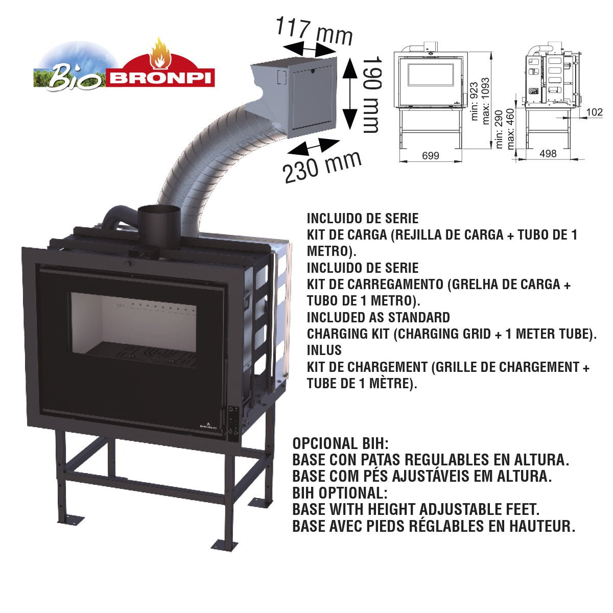 • Tipo: Estufa de pellet con horno y canalizable.