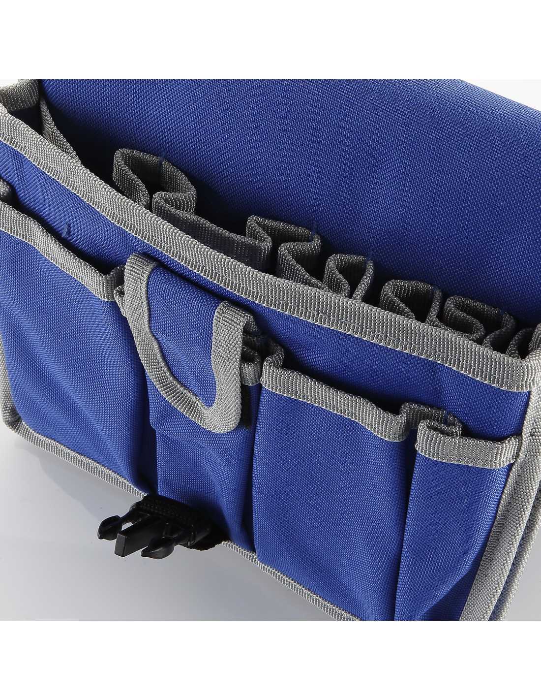 Con múltiples compartimentos internos y externos, permite guardar desde llaves y destornilladores hasta herramientas eléctricas o piezas de repuesto. Su diseño modular permite una distribución clara y segura de los elementos.