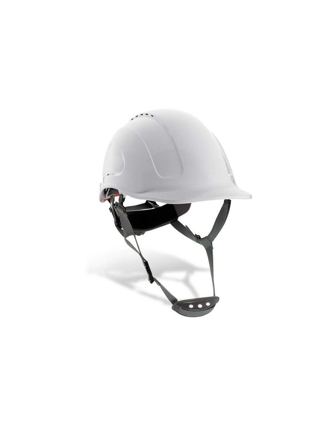 Casco STEEL PRO protección ABS cierre ruleta, arnés textil 6 puntos y barbiquejo Blanco