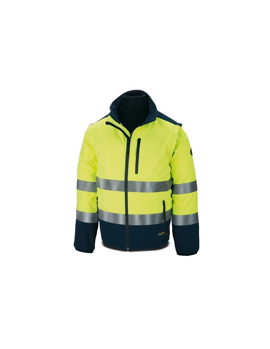 Cazadora MARCA PL SOFT SHELL Alta Visivilidad Amarillo/Azul. Mangas Desmontables 310Gr T-XL