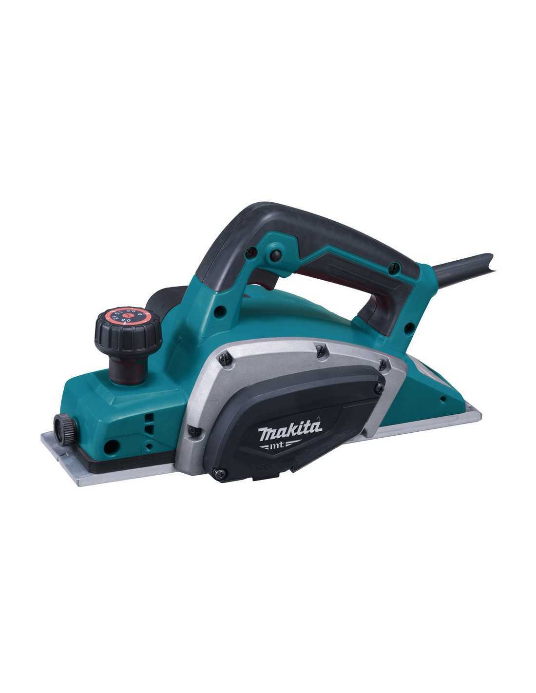 El Makita M1901B es un cepillo eléctrico robusto con mesas de fundición de aluminio. Está equilibrado para una buena posición de trabajo con una sola mano, y su mango está recubierto de goma para un manejo seguro. La profundidad de cepillado es de 2,0 mm, y se puede ajustar fácilmente con el pomo.