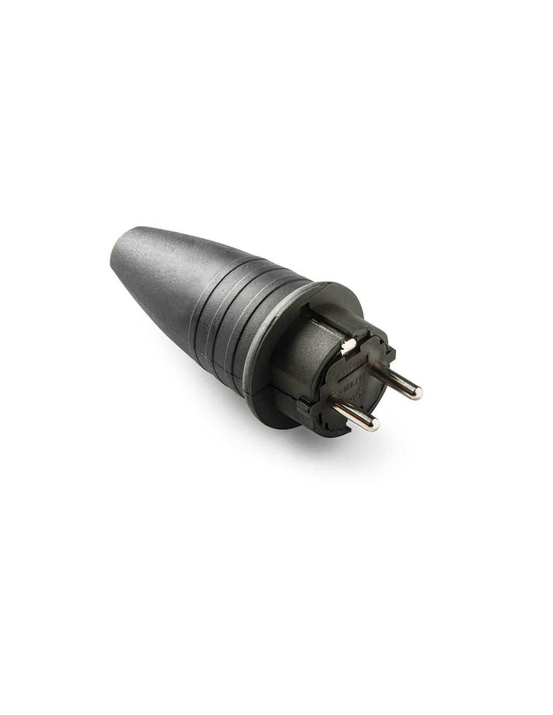 Clavija de Enchufe FAMATEL 2P+T 16A 250V Goma Negra IP44 para proyectos de bricolaje y fontanería. Aporta una solución segura y duradera para conexiones, conducción o evacuación de agua.