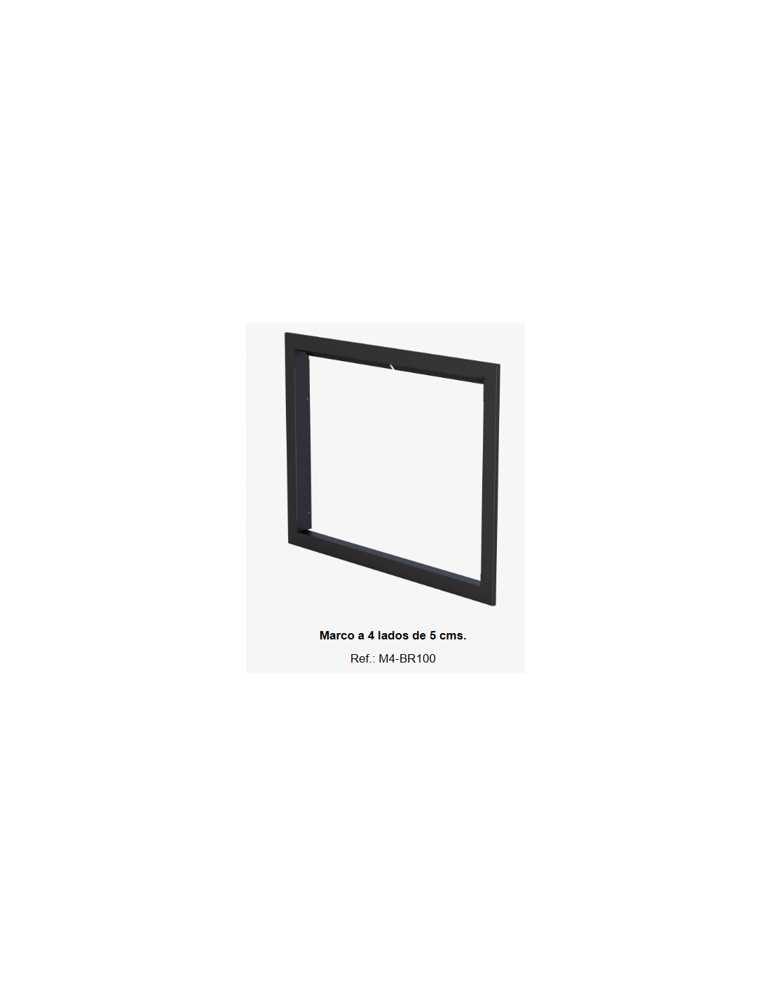 Recomendamos el Marco a 4 lados específicamente para aquellos clientes que proyectan una chimenea en una pared lisa o tabique de pladur donde el equipo queda elevado respecto al suelo. Este formato "ventana" es la tendencia actual en diseño de interiores, ya que ofrece un acabado sofisticado y equilibrado. Es el accesorio ideal para situaciones donde no se dispone de una bancada inferior, ya que el marco remata la parte baja del aparato con la misma precisión que los laterales. Si busca que su BR100-S luzca con un acabado de máxima categoría, este marco es la inversión necesaria para transformar una simple instalación en una pieza central de diseño arquitectónico, garantizando que cada detalle de su hogar respire calidad y profesionalidad.