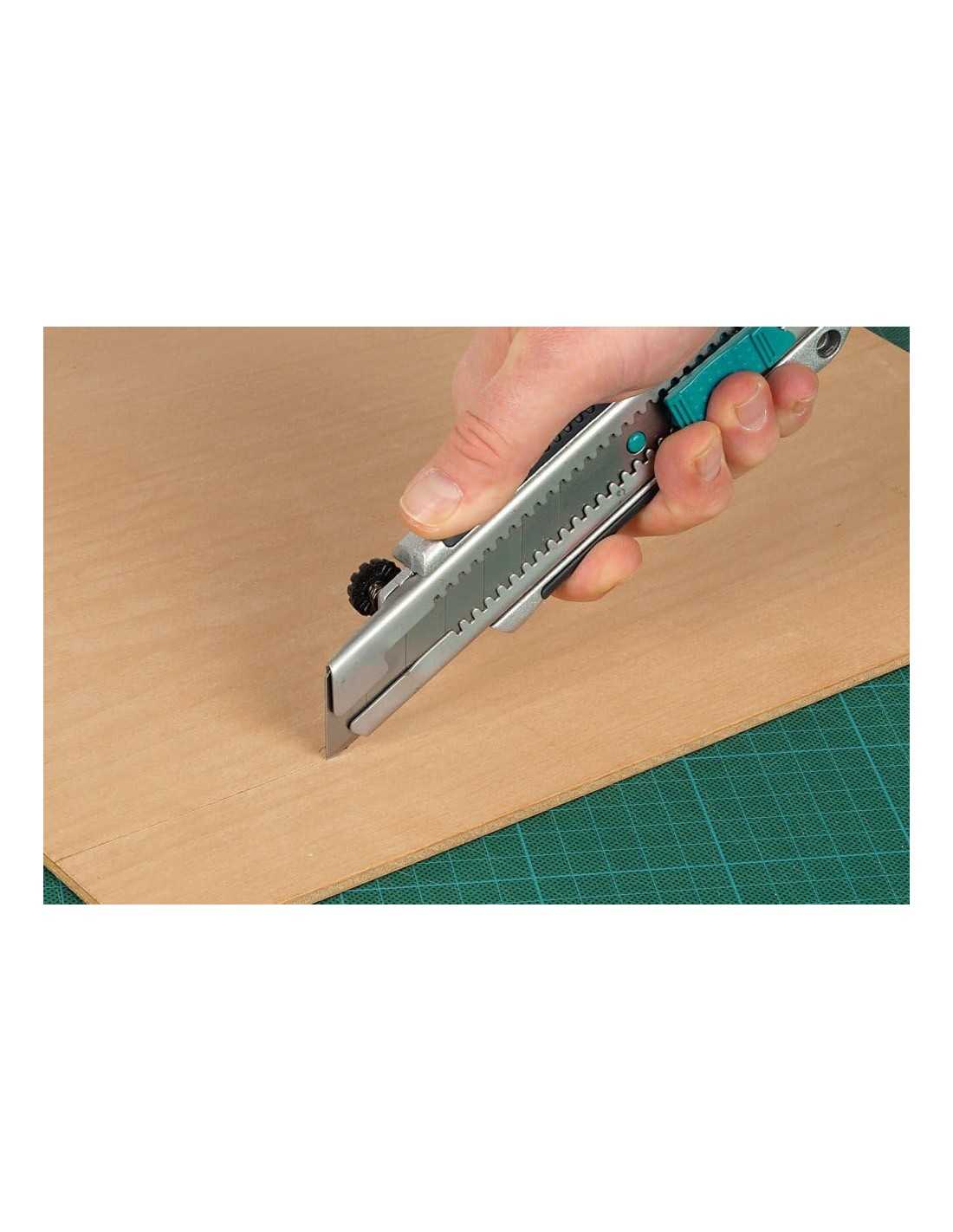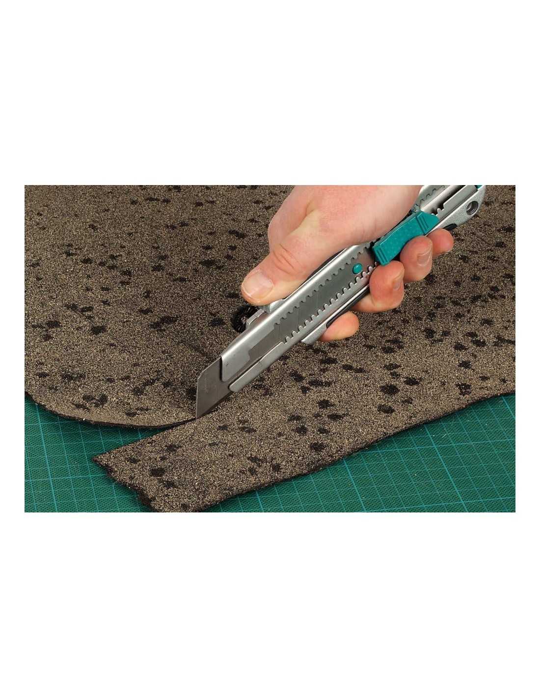 Este cúter es reutilizable y compatible con cuchillas de repuesto, lo que prolonga su vida útil y lo convierte en una herramienta económica y sostenible. El cambio de cuchilla se realiza de forma rápida y sencilla, sin necesidad de herramientas adicionales, gracias a su alojamiento especial. Además, cuenta con una función de bloqueo automático que garantiza la seguridad durante el uso.
