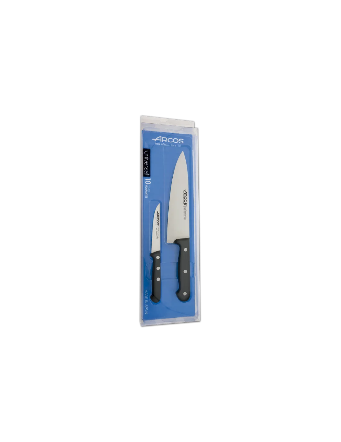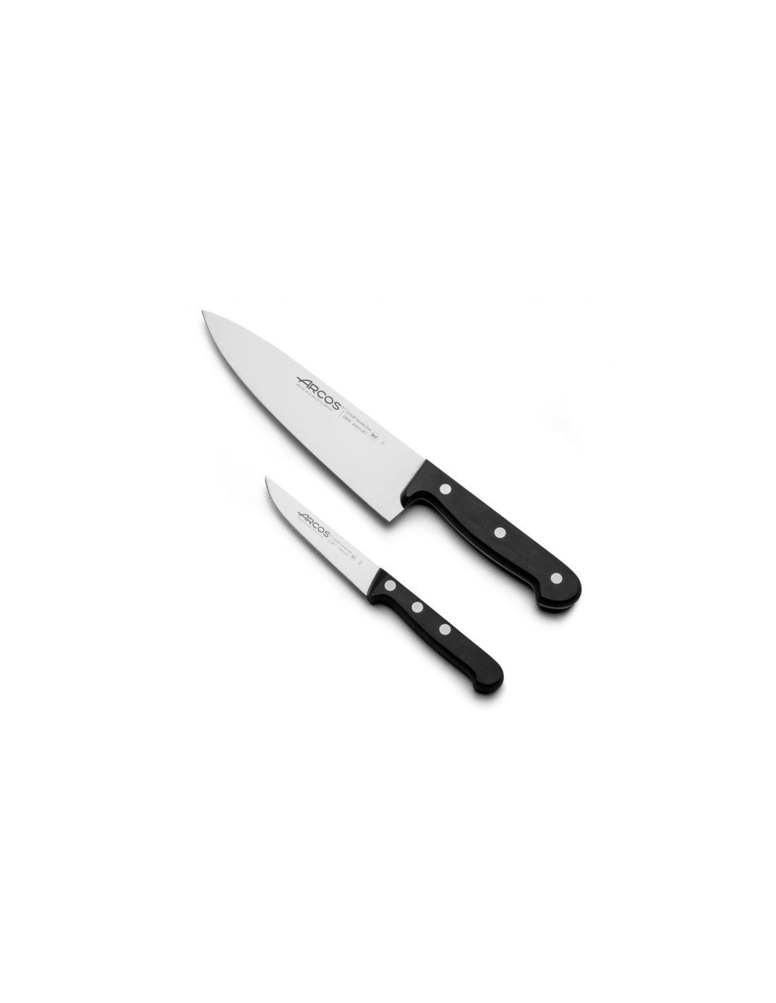 El Set de Cocina Arcos Serie Universal 285800 rene dos herramientas esenciales para tu cocina: un cuchillo de verduras de 100mm y un cuchillo cocinero de 200mm. Fabricados en acero inoxidable Nitrum, son la combinación perfecta de estilo, agarre cmodo y eficiencia de corte.