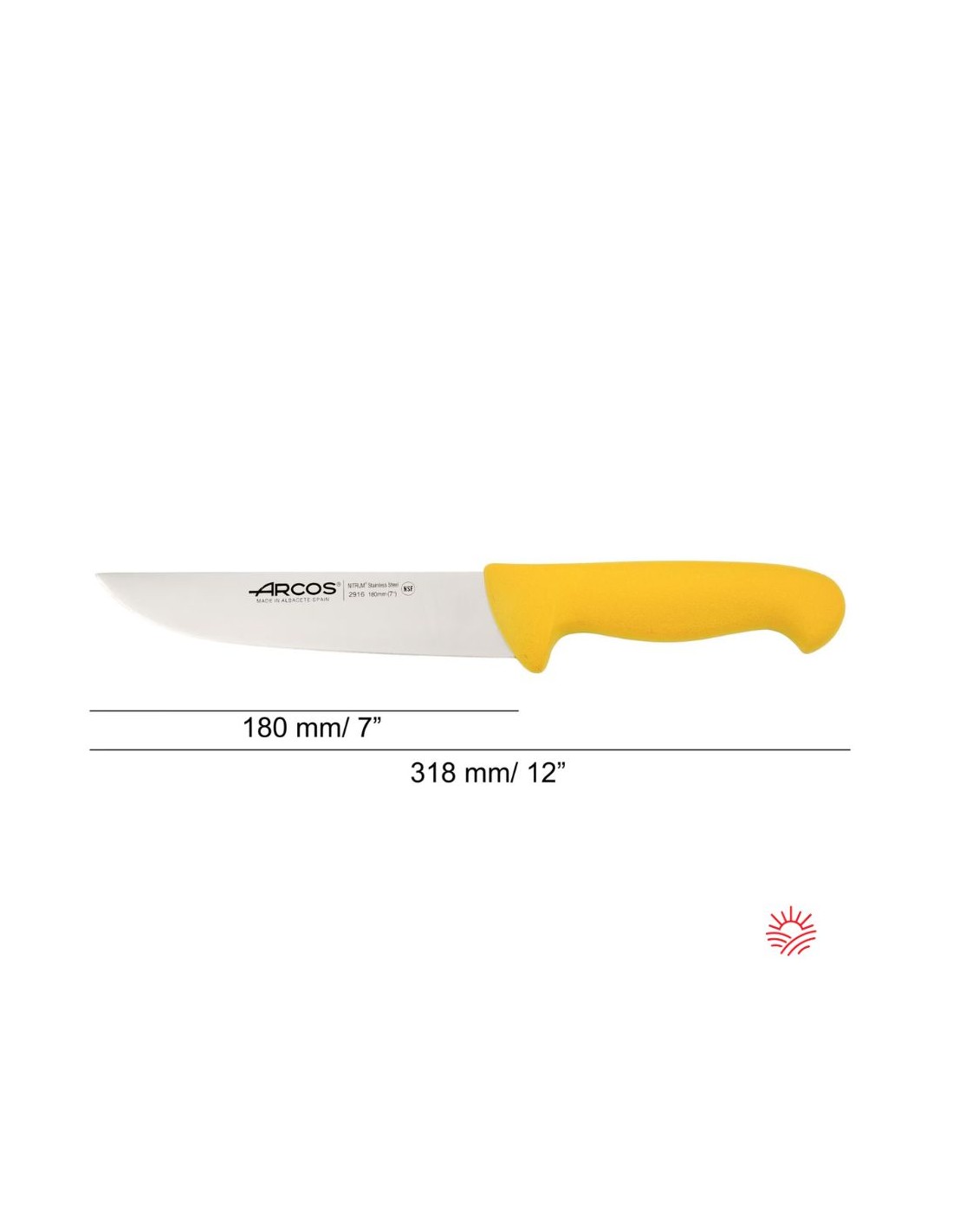 El Cuchillo Carnicero Arcos 291600, de la serie 2900, es el compaero ideal para quienes trabajan con cortes exigentes. Con una hoja de 180mm en acero Nitrum y un mango ergonmico de polipropileno, ofrece la fuerza, control y comodidad necesarios para uso intensivo en carniceras y cocinas.