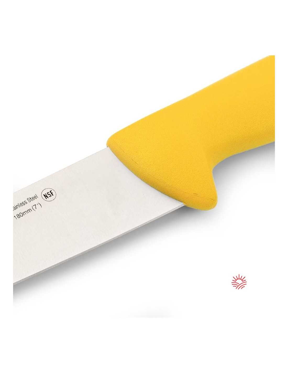 Su hoja robusta permite seccionar carne con gran precisin y sin esfuerzo. El mango antideslizante proporciona seguridad y estabilidad en manos mojadas o en condiciones trmicas extremas (resiste hasta 120130C).