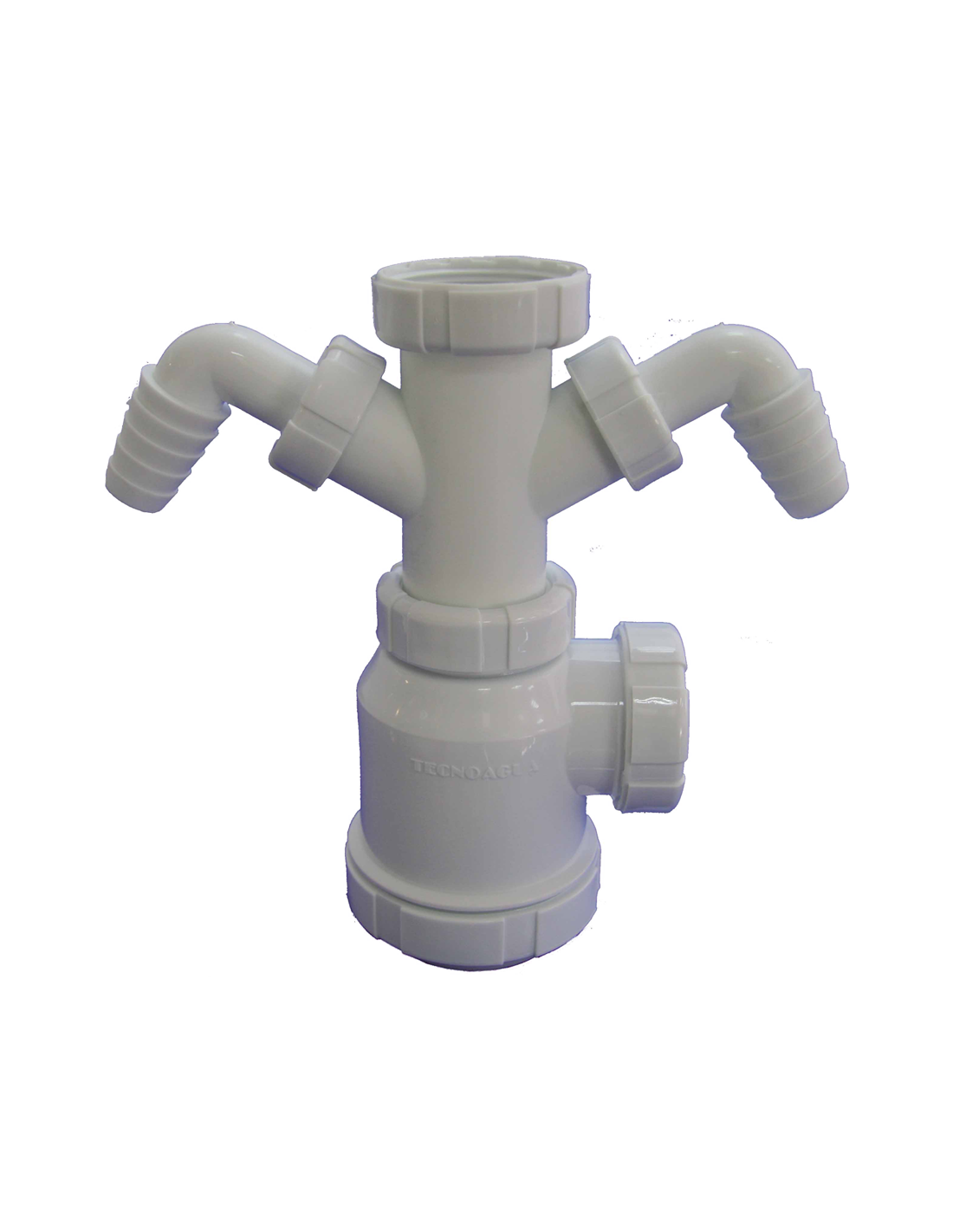 Sifón desague botella T-4TD Racor extensible con doble toma de lavadora 1 1/2 x Ø20 x 1 1/2-Ø40 · Instalación y calidad