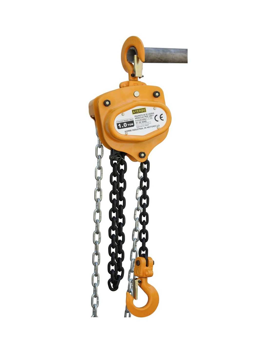 Características:Capacidad máxima: 1.000 kg. Diámetro cadena: 6 mm. N. cadenas: 1 Altura de elevación: 6 m.