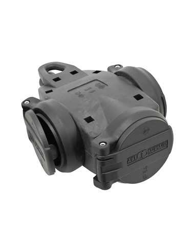 Triple schuko de goma con tapas 16A 250V negro Ref. 01471 | Cómpralo online