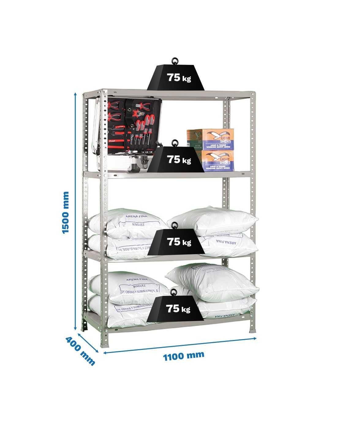 Cada balda está preparada para soportar hasta 300 kg de peso uniformemente distribuido. Este nivel de resistencia hace que esta estantería sea perfecta para organizar herramientas, productos industriales, cajas y todo tipo de materiales pesados o voluminosos.