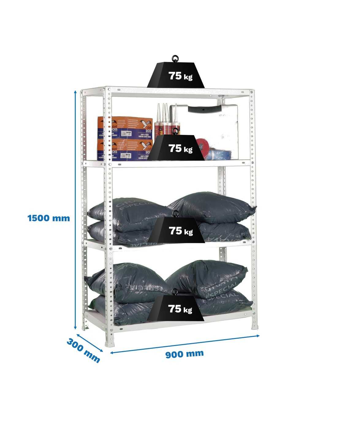 Cada balda está preparada para soportar hasta 300 kg de peso uniformemente distribuido. Este nivel de resistencia hace que esta estantería sea perfecta para organizar herramientas, productos industriales, cajas y todo tipo de materiales pesados o voluminosos.