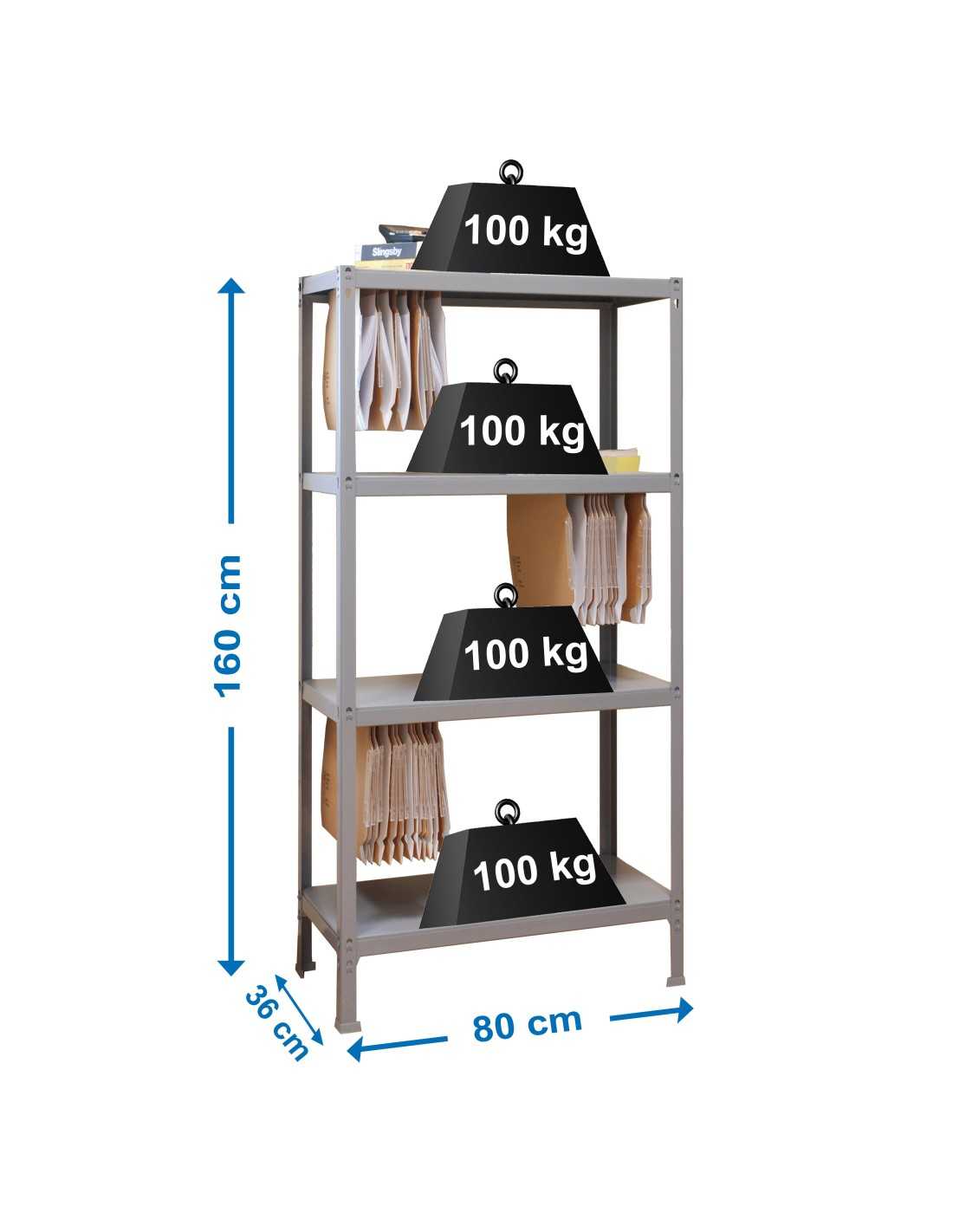 Cada balda está preparada para soportar hasta 300 kg de peso uniformemente distribuido. Este nivel de resistencia hace que esta estantería sea perfecta para organizar herramientas, productos industriales, cajas y todo tipo de materiales pesados o voluminosos.
