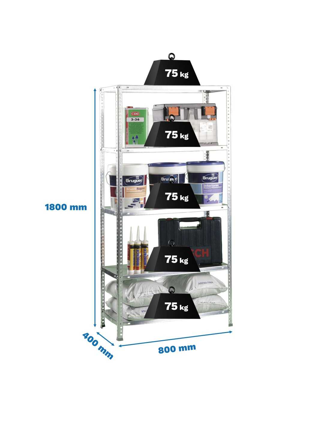 Fabricada en acero galvanizado o pintado según modelo, esta estantería es perfecta para carga media, permitiendo hasta 300 kg por balda. Gracias a su diseño de 5 o 6 niveles, permite almacenar desde materiales ligeros hasta elementos de gran peso.