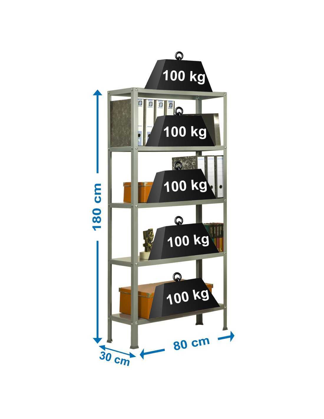 Fabricada en acero galvanizado o pintado según modelo, esta estantería es perfecta para carga media, permitiendo hasta 300 kg por balda. Gracias a su diseño de 5 o 6 niveles, permite almacenar desde materiales ligeros hasta elementos de gran peso.