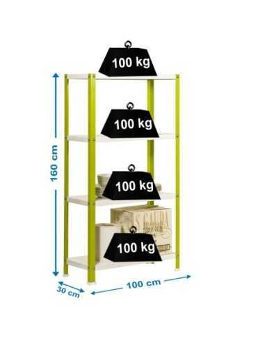 Cada balda está preparada para soportar hasta 300 kg de peso uniformemente distribuido. Este nivel de resistencia hace que esta estantería sea perfecta para organizar herramientas, productos industriales, cajas y todo tipo de materiales pesados o voluminosos.