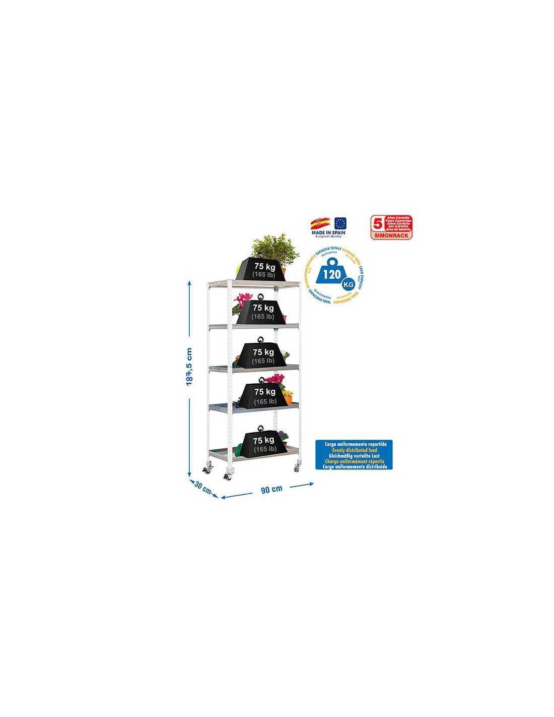 Estantería de Jardín SIMONGARDEN click con Ruedas 5/300 blanco/galvanizadanizada
