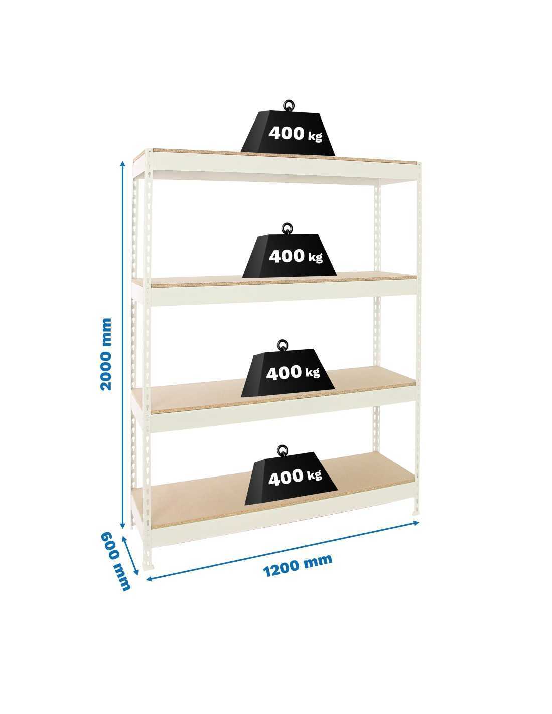 Las baldas metálicas tipo "rex" o de madera soportan hasta 300 kg distribuidos de forma uniforme, lo que la convierte en una solución ideal para almacenar cajas, herramientas, equipos ligeros o productos del hogar.