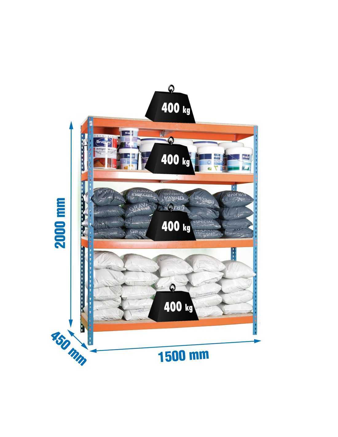 Las baldas metálicas tipo "rex" o de madera soportan hasta 300 kg distribuidos de forma uniforme, lo que la convierte en una solución ideal para almacenar cajas, herramientas, equipos ligeros o productos del hogar.