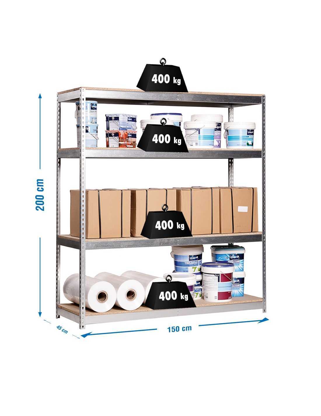 Las baldas metálicas tipo "rex" o de madera soportan hasta 300 kg distribuidos de forma uniforme, lo que la convierte en una solución ideal para almacenar cajas, herramientas, equipos ligeros o productos del hogar.