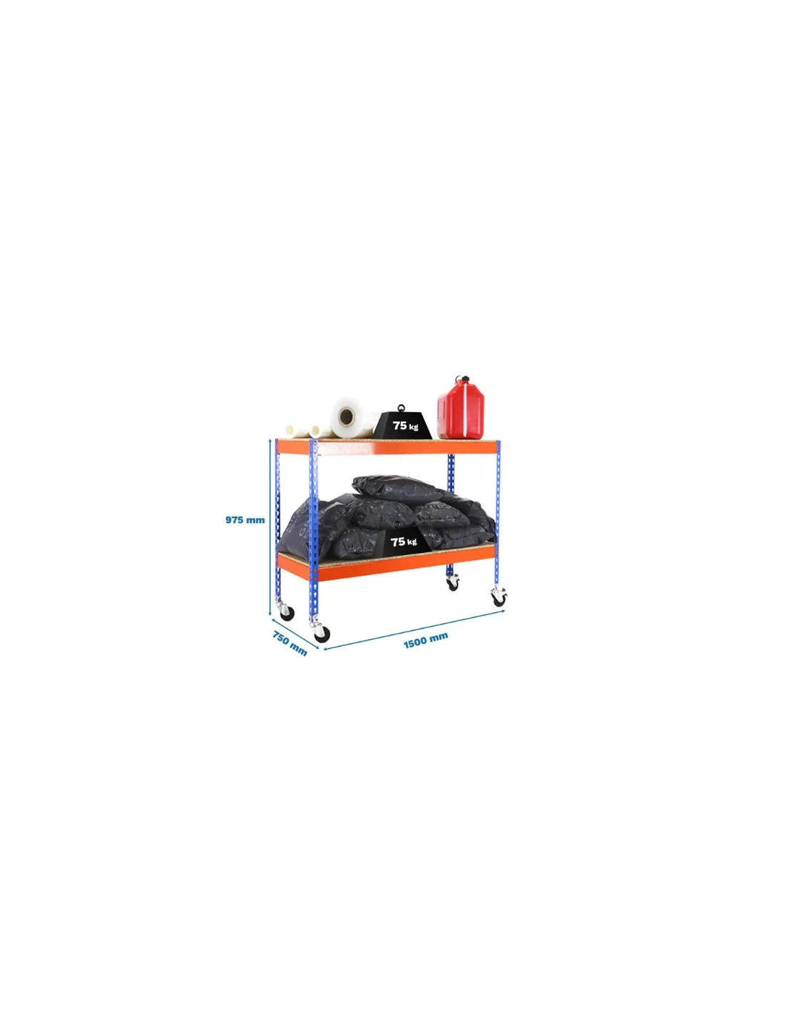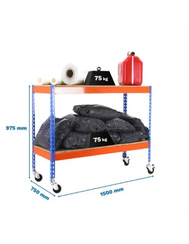La Estantería SIMONRACK Ecoforte con Ruedas 1507-2 chipboard 900 az/nar/Madera es una estantería metálica de la gama ECOFORTE de SimonRack, diseñada para quienes buscan una solución funcional, económica y fácil de montar. Ideal para uso doméstico o semiprofesional, soporta hasta 300 kg por balda sin necesidad de tornillos ni herramientas especiales.