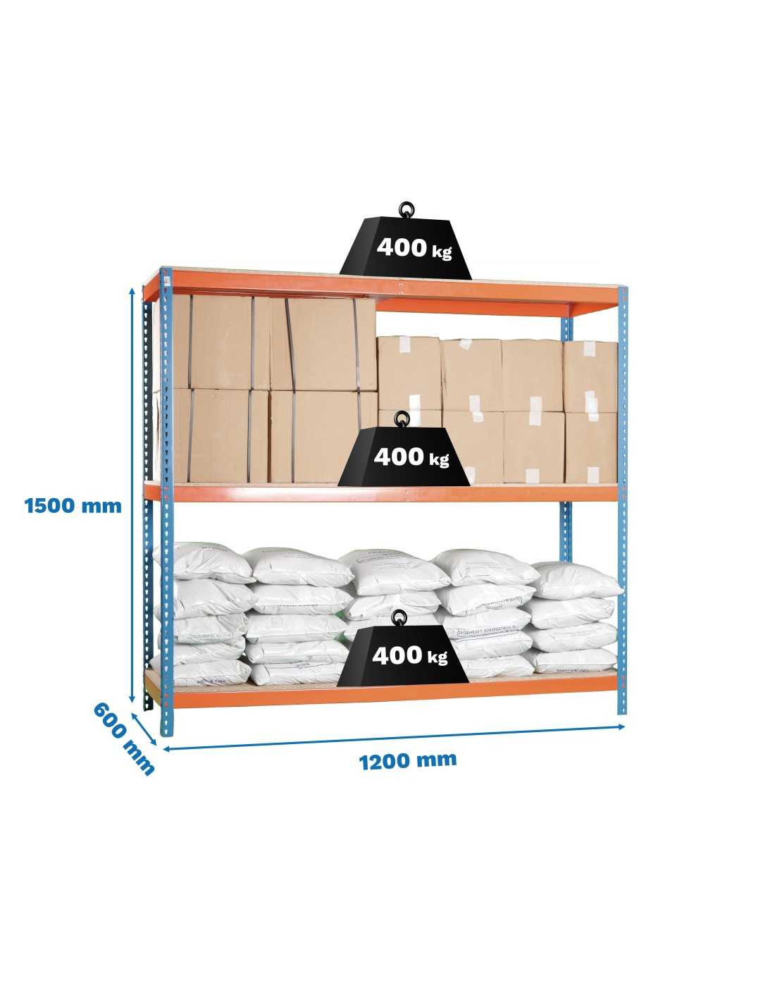 Las baldas metálicas tipo "rex" o de madera soportan hasta 300 kg distribuidos de forma uniforme, lo que la convierte en una solución ideal para almacenar cajas, herramientas, equipos ligeros o productos del hogar.